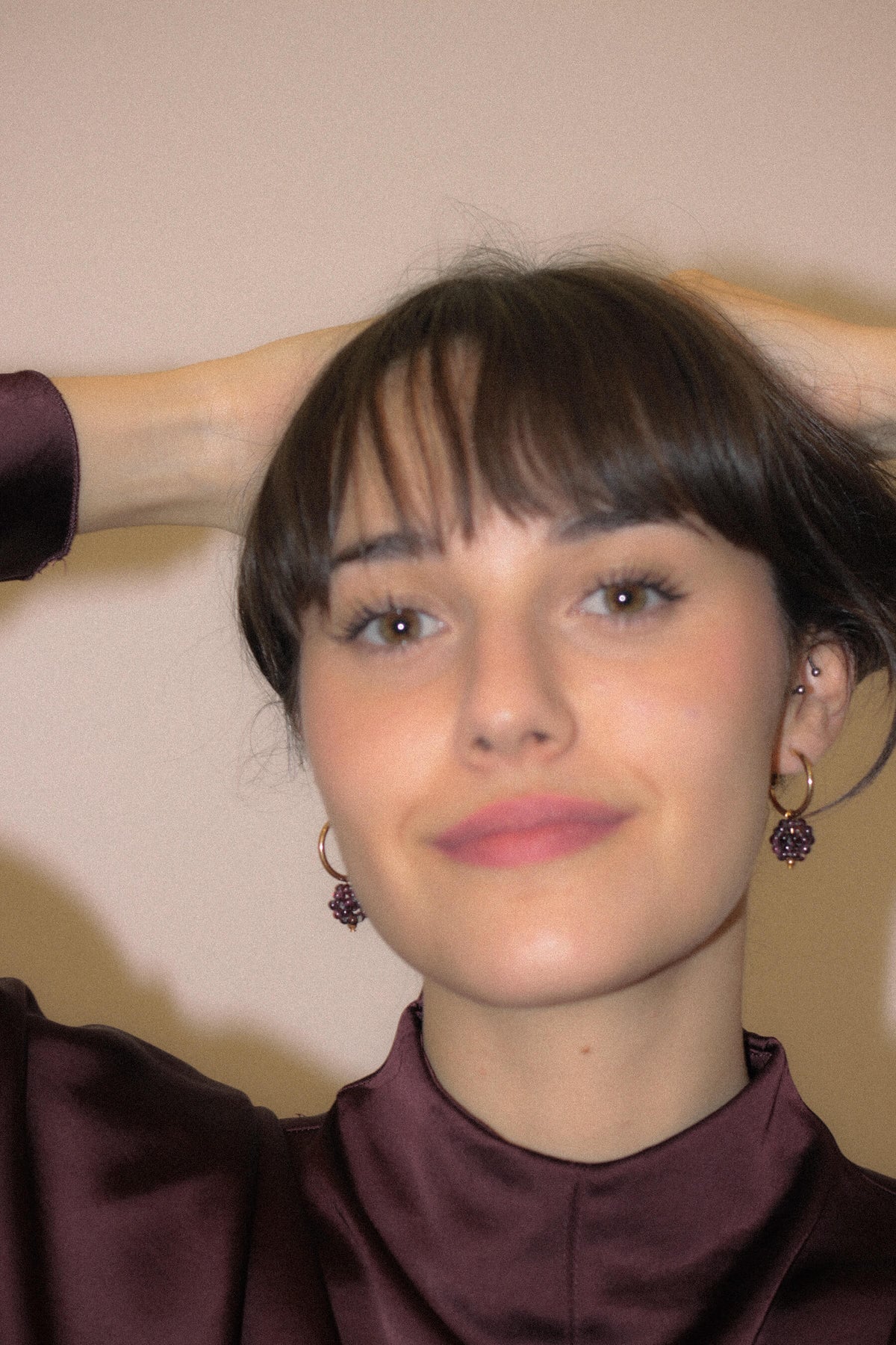 - Aritos bañados en oro de 18k y moras de piedra Granate.
